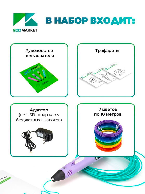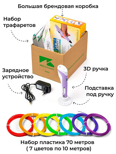 3D ручка 3D Pen PRO фиолетовая с набором дополнительного пластика 7 цветов4374 ₽