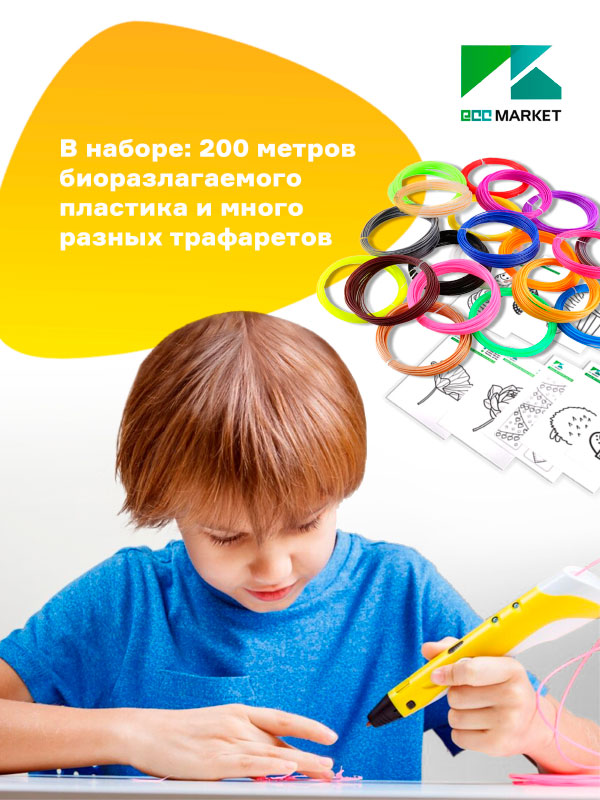 3D ручка 3D Pen PRO желтая с набором дополнительного пластика 7 цветов4374 ₽