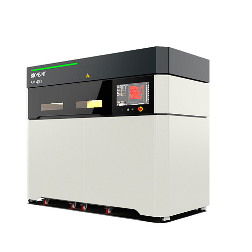 Несомненным преимуществом нового 3D-принтера SM400 является размер его зоны построения. Её габариты составляют 440×440×550 мм, и это самый большой показатель во всей серии. В нём также установлен CO2 лазер повышенной мощности — 60 Вт, а также гальваносканер с динамической фокусировкой и скоростью сканирования 10 м/с. Благодаря использованию двусторонней системы подачи порошка сокращается время формирования каждого слоя. С этими новыми возможностями производительность принтера составляет 20 мм/ч при настраиваемой высоте слоя от 60 до 300 мкм.