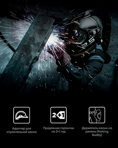 Удобное оголовье с регулировкой угла наклона щитка и возможностью комплектации легкой и удобной каскеткой. Совместимость с любой защитной каской (при помощи универсального адаптера). Легкий вес - 480 грамм